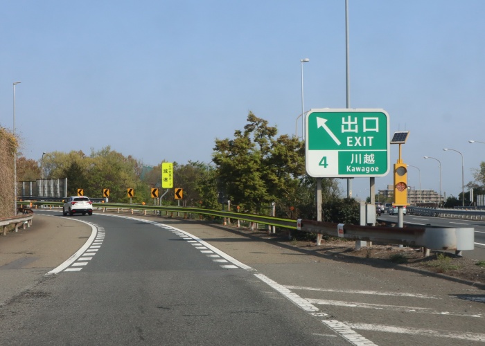 「3」所沢まで10分 「4」川越まで20分 「9」藤岡JCTまで55分