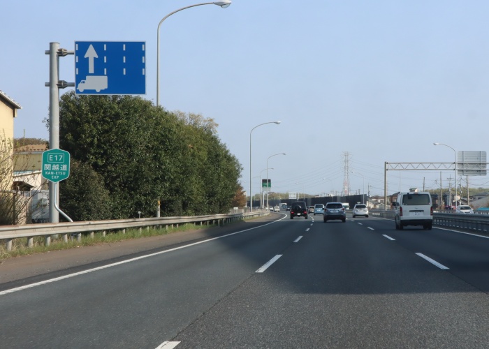ETC専用「3-1」三芳PA 3km 「4」川越 10km 「4-1」鶴ヶ島JCT 17km 「[E17]関越道」新潟 291km