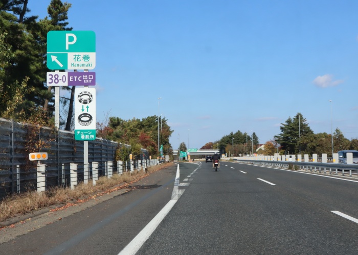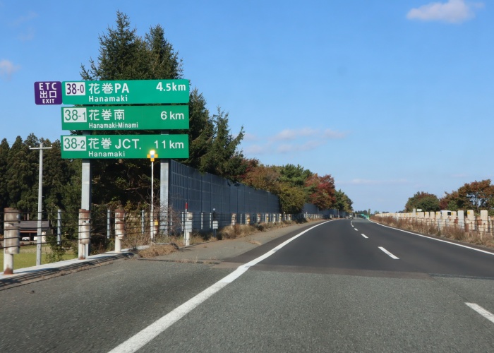 ETC出口「38-0」花巻PA 4.5km 「38-1」花巻南 6km 「38-2」花巻JCT 11km