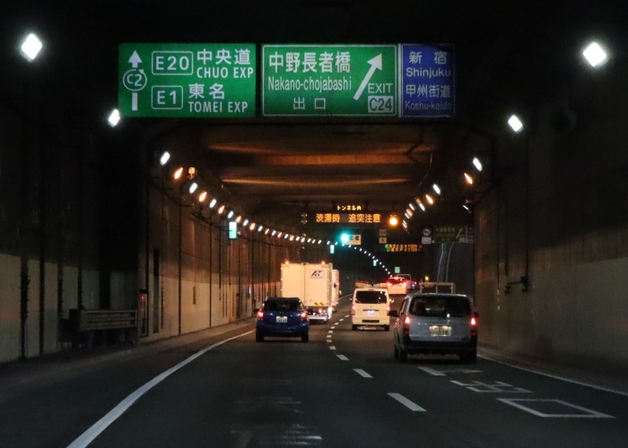 ↑[E20]中央道 [E1]東名 「C24」中野長者橋 出口 新宿 甲州街道
