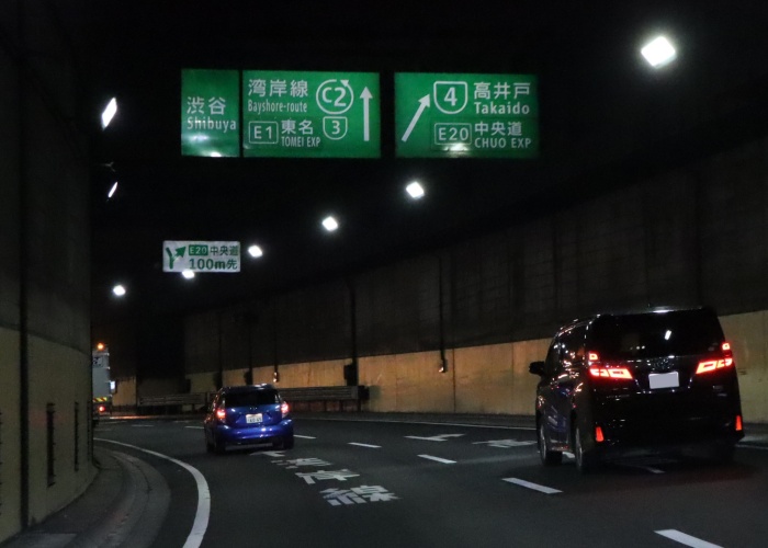 渋谷 湾岸線 [E1]東名[C2]↑↗[4]高井戸 [E20]中央道