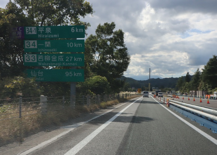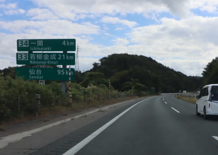 ETC専用「34-1」平泉 6km 「34」一関 10km 「33」若柳金成 27km 仙台 95km
