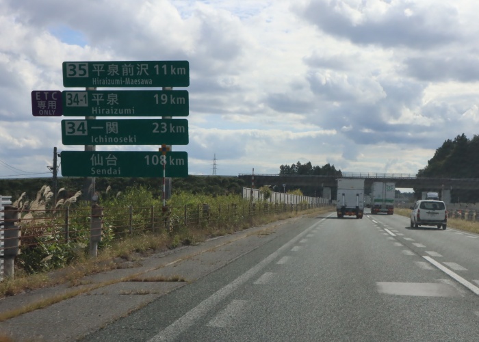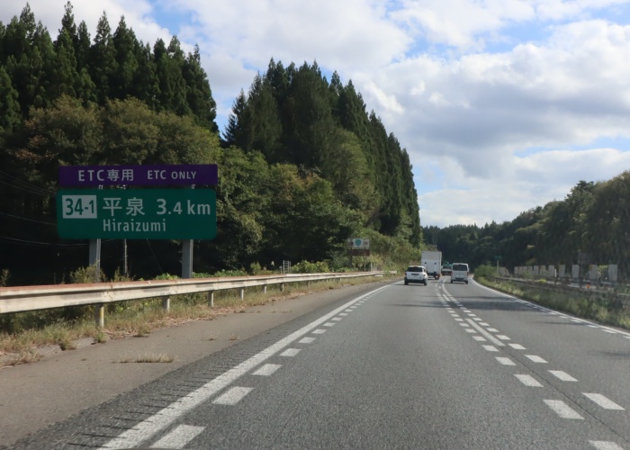 「35」平泉前沢 11km ETC専用「34-1」平泉 19km 「34」一関 23km 仙台 108km
