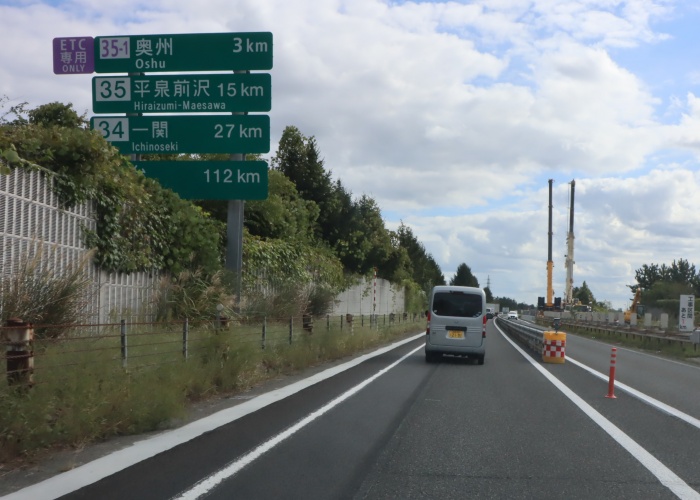 ETC専用「35-1」奥州 3km 「35」平泉前沢 15km 「34」一関 27km 仙台 112km