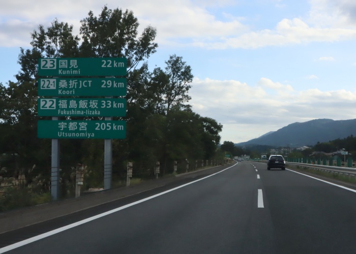 「23」国見 22km 「22-1」桑折JCT 29km 「22」福島飯坂 33km 宇都宮 205km
