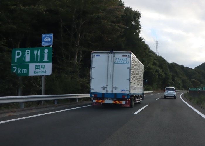 また登坂車線が現れる。国見SAに入るためには登坂車線に入っておく必要がある。