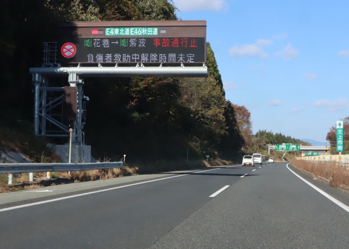 ETC専用「35-1」奥州 9km 「36」水沢 16km 「36-1」北上金ヶ崎 25km 青森 258km