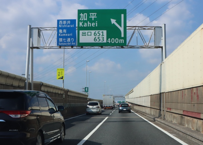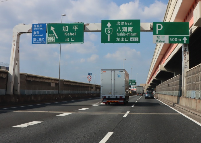 西新井 亀有 環七通り 「651 653」加平 出口 ↑次は八潮南 左出口「655」 加平PA 500m↑