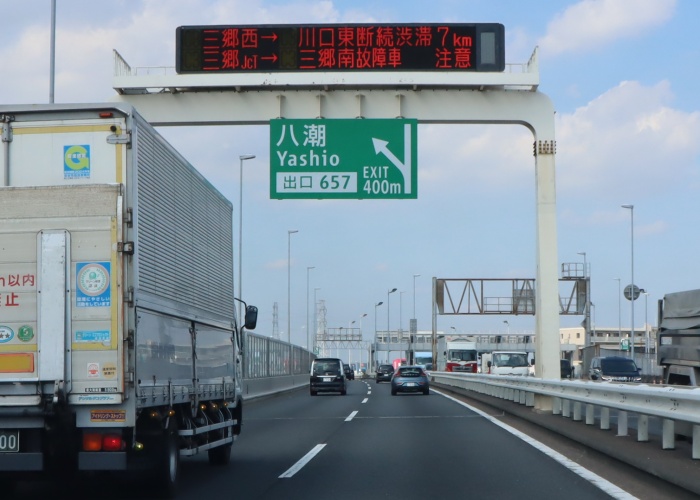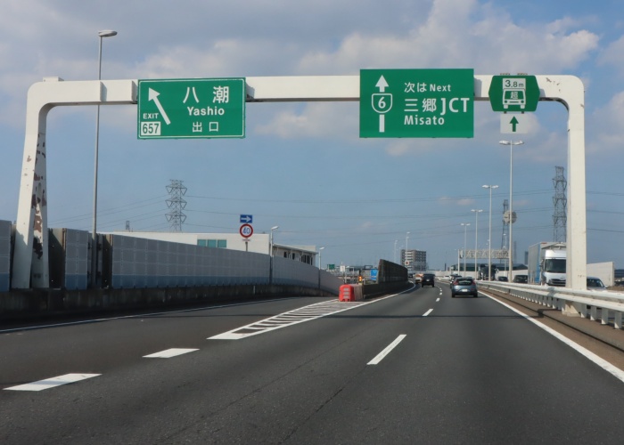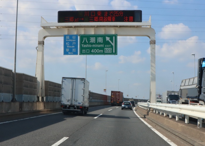越谷 松戸 草加 「655」八潮南 出口 ↑次は八潮 左出口「657」